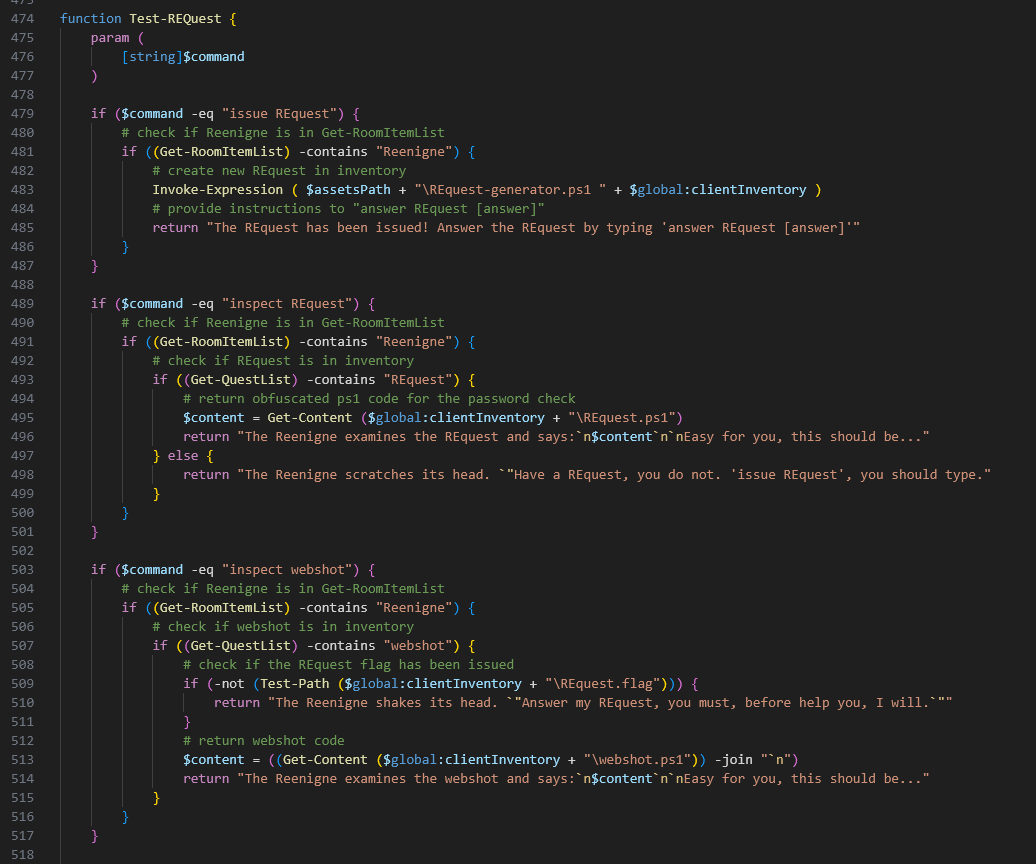 About a month ago, counterShell set up a booth at the NUS Greyhats Summit to showcase a simple CTF challenge that was crafted as a text-based RPG. Think "go caves", "get torch" sort of commands. But in the backend, it was "cd caves" and "move torch.bat %playerinventory%\torch.bat". We had 3 mini challenges as part of the overall RPG, and a meta challenge to "escape" out of the game.